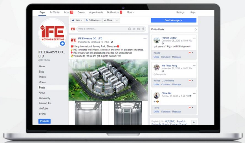 4.為快意電梯員工提供Facebook培訓(xùn),企業(yè)內(nèi)部員工學(xué)會(huì)操作,以確保對(duì)詢(xún)盤(pán)回復(fù)及時(shí)。